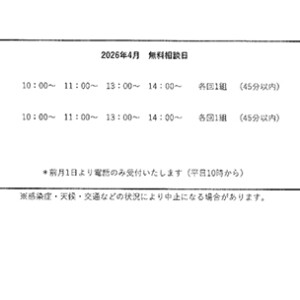 税務相談窓口ページに「2026年4月無料相談」のお知らせを掲載しました