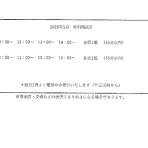 税務相談窓口ページに「2026年5月無料相談」のお知らせを掲載しました